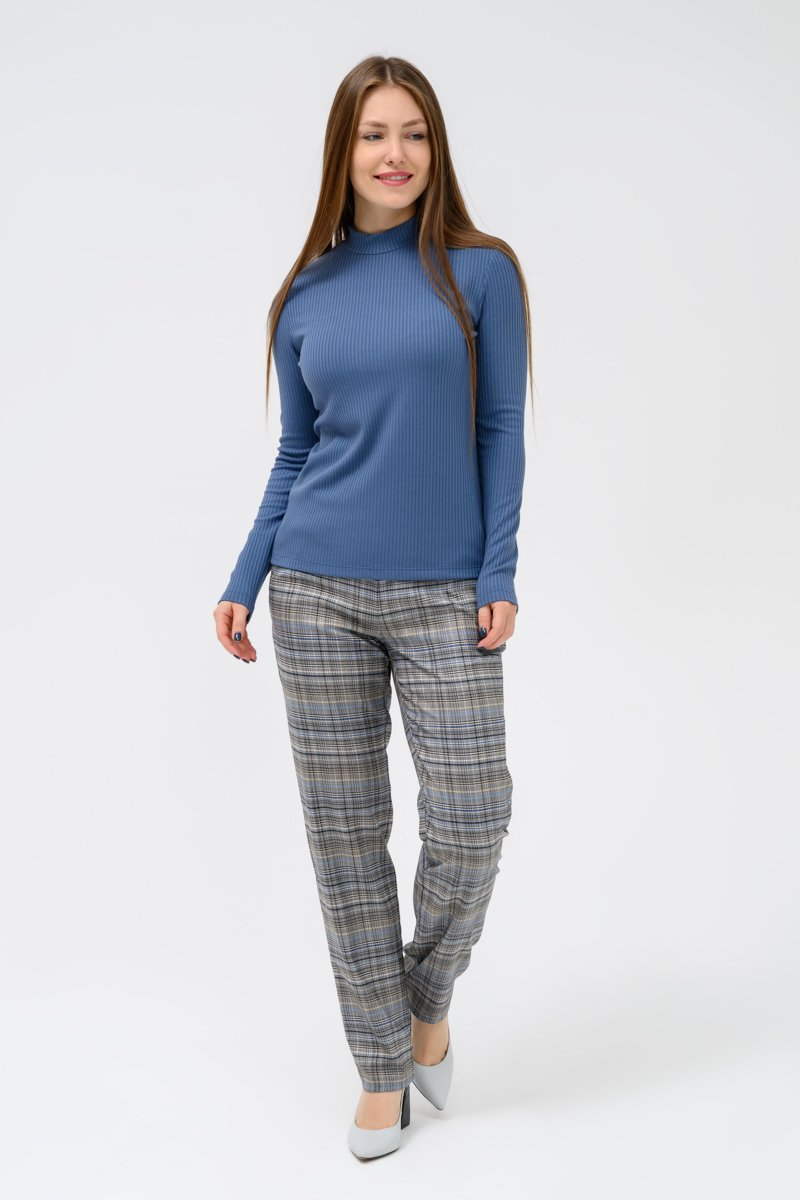 Брюки женские из костюмной ткани, прямые классические, с карманами в боковых швах, с имитацией застежки "гульф". Пояс брюк в боковых швах на резинке.