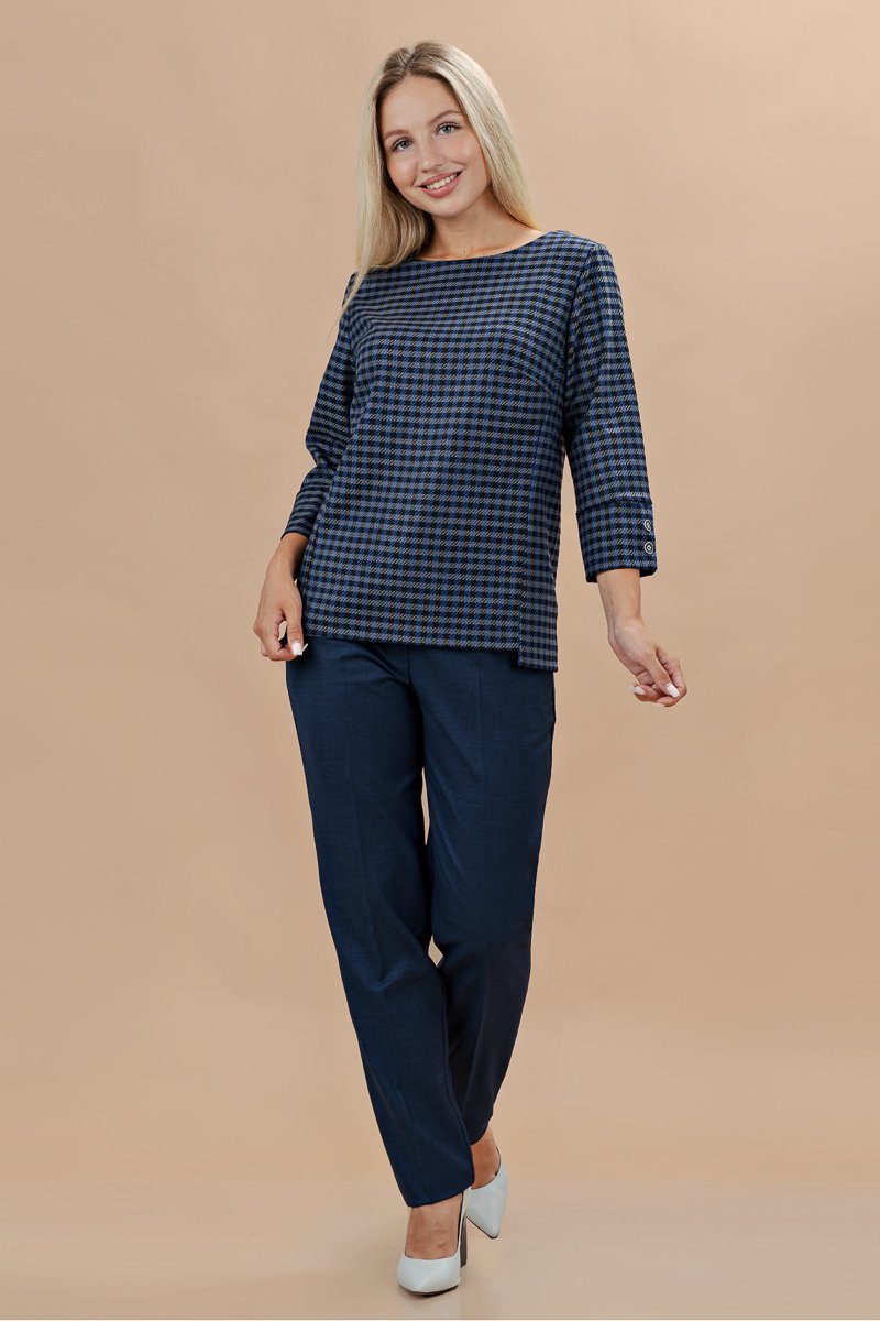 Брюки женские из костюмной ткани, прямые классические со стрелками, карманами в боковых швах, застежкой "гульф" на молнии. Пояс брюк в боковых швах на резинке.